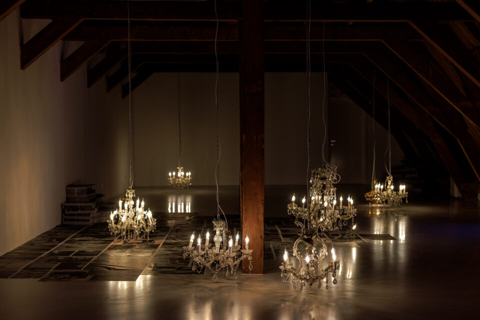Ghosts Don’t Like New Things, Stedelijk Museum Schiedam, 2025. Photo: Aad Hoogendoorn site-specific installation, chandeliers, publication with 80 photographs and 5 commissioned poems Where I’m Calling From, 2025 single channel video projection, 4K color video, 16:9, stereo sound 5 minute 42 second loopWhere I’m Calling From, Itinéraires Fantômes, CAPC Musée d’art Contemporain de Bordeaux, 2024. Photo: Arthur Péquin.Where I’m Calling From, Itinéraires Fantômes, CAPC Musée d’art Contemporain de Bordeaux, 2024. Photo: Arthur Péquin.